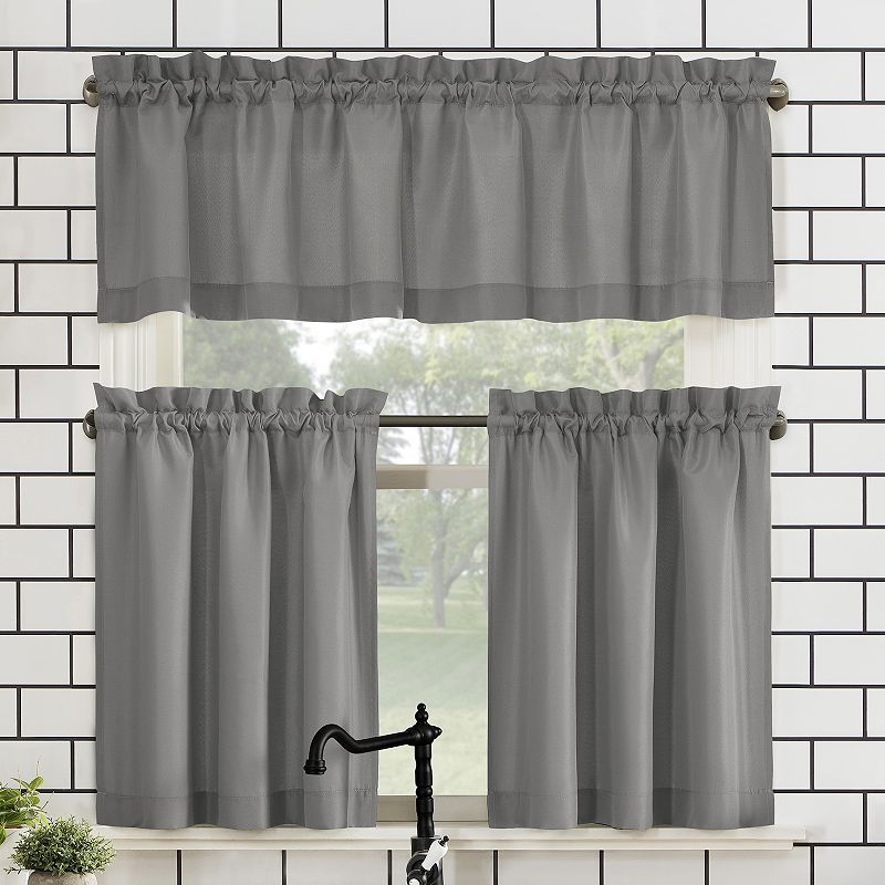 No. 918 Martine Microfiber Semi-Sheer Kitchen Curtain Valance and Tiers Set, GrayEasily change the look of your existing window with this stylish window curtain from No. 918. Easily change the look of your existing window with this stylish window curtain from No. 918. Includes 1 valance and 2 tier curtains Light filtering 0.75-in. max rod diameter Rod pocket Soft microfiber fabric Gently filters liNo. 918