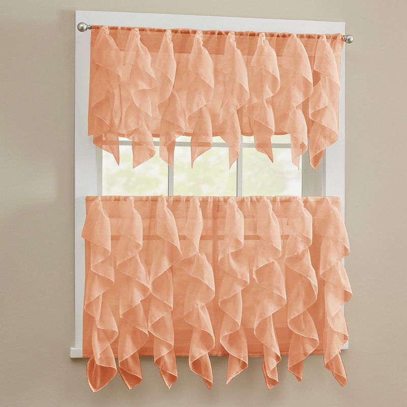 Sweet Home Collection Sheer Voile Vertical Ruffle Kitchen Tier Pair & Valance Set, Pale SpiceRamp up the look of your existing decor with this Sweet Home Collection Sheer Voile Vertical Ruffle Kitchen Tier Pair & Valance Set. 3-piece set What's included: Tier Pair and Valance Sheers Style: Shabby Chic Rod pocket 1.5" max rod diameter Featuring a vertical cascading ruffle pattern that offers a light filtering pSweet Home