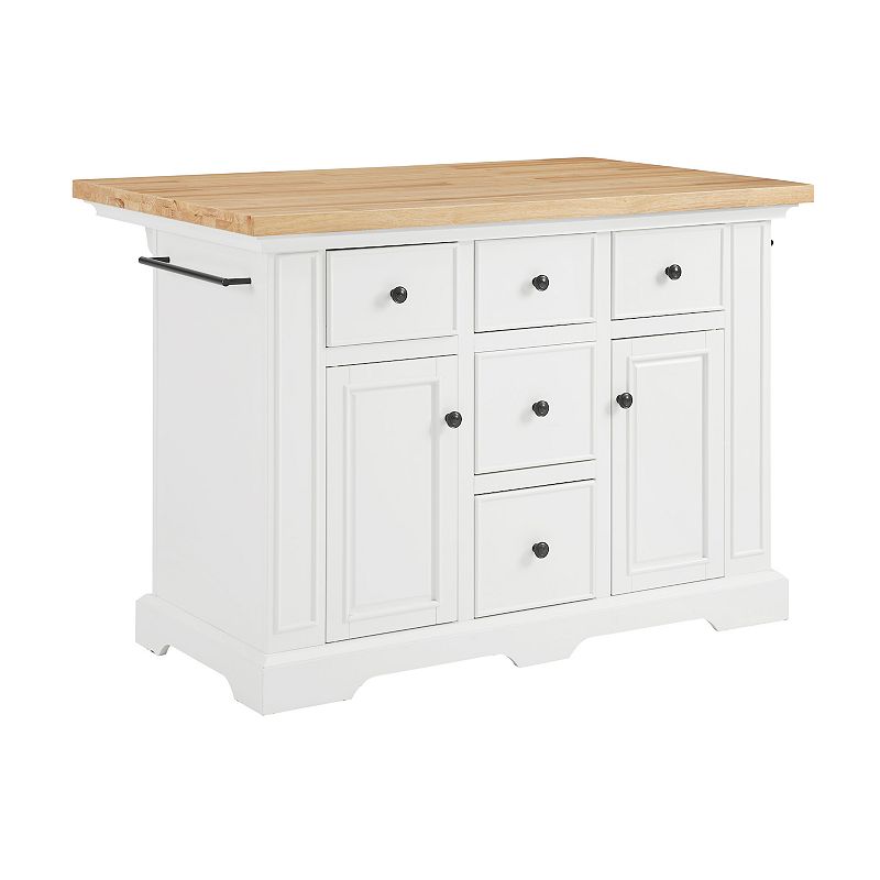 Crosley Julia Wood-Top Kitchen Island, WhiteCreate a social, functional spot in your kitchen with this Crosley Julia wood-top kitchen island. Transitional design Solid wood countertop with a natural finish Genuine metal hardware Five storage drawers on full-extension ball-bearing glides Two spacious storage cabinets Built-in spice rack Includes towel bar FinisheCrosley