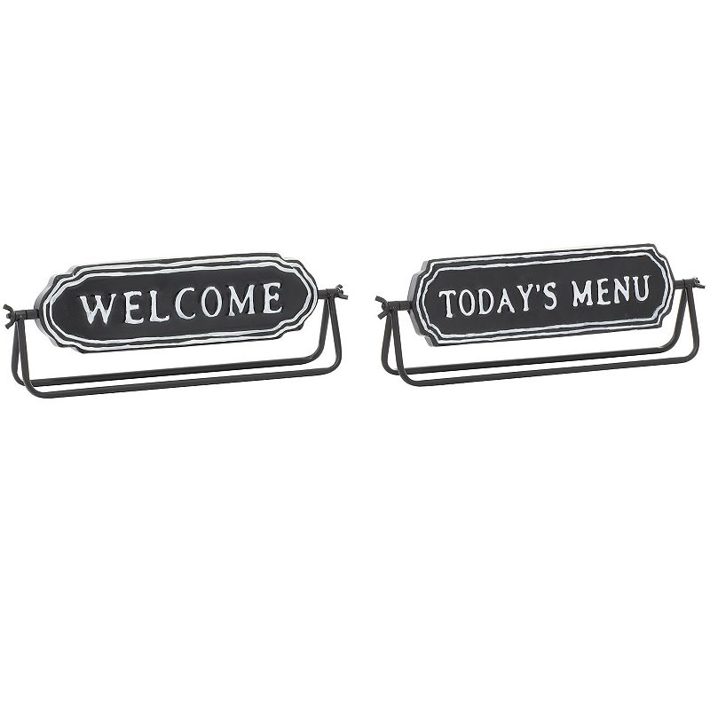 Stella & Eve Decorative Kitchen Sign 2-Piece Set, BlackAdd some friendly charm to your farmhouse kitchen with this pair of black metal table decor signs. Each rectangular sign features embossed all-caps serif lettering, reading "Welcome" and "Today's Menu" script. Add some friendly charm to your farmhouse kitchen with this pair of black metal table decor signs. Each rectanStella & Eve