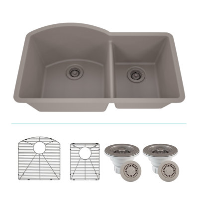 32" x 20" Quartz Kitchen Sink, 70/30 Double Bowl Sink, Drop-in Sink, Undermount Sink, Granite Kitchen Sink, with 2 Steel Grids and Basket Strainer, DiElevate your kitchen with the unmatched quality of the Lexicon Platinum Composite Quartz Offset Double Bowl Kitchen Sink. The LP-7030 epitomizes contemporary design and unparalleled convenience, includes meticulously crafted matching drain and bottom grid. Experience the luxury of a deep 9-1/2-inch left bowl and 8 inchLexicon Quartz