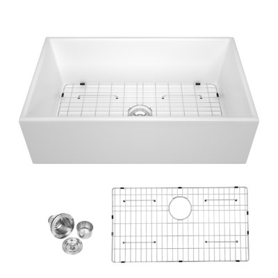 36'' L x 20" W Farmhouse Kitchen Sink White Ceramic Single Bowl Kitchen Sink Apron Front SinkThe 36 Inch farmhouse kitchen sink is crafted from premium ceramic and fired at 2300F, ensuring exceptional durability. Its finish provides resistance against chips, fading, and scratches, making it ideal for withstanding high-temperature cookware. LogmeyLogmey