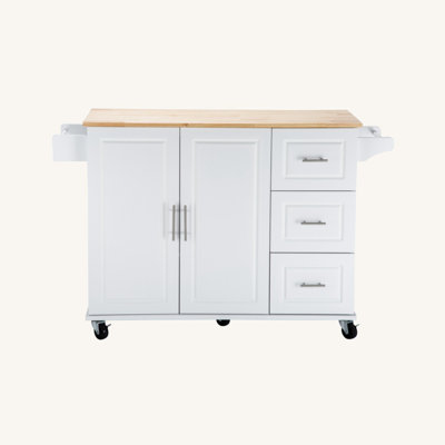 Kitchen Cart With Rubber Wood Drop-Leaf Countertop ,Cabinet Door Internal Storage Racks,Kitchen Island On 5 Wheels With Storage Cabinet And 3 DrawersThis kitchen island can expand your kitchen space! The simple shape, practical storage layout design, and simple color scheme make this product extraordinarily approachable and can fit in well no matter what the decorating style is. Don't hesitate to add a practical and stylish kitchen island to your life! Lark Manor BLark Manor