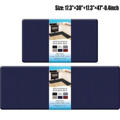 2PCS Kitchen Rugs, Cushioned Anti Fatigue Kitchen Mats,Blue0.47 inch thick kitchen mat offers supportive cushioning that eases strain on your feet and joints, allowing you to stand comfortably for longer periods in the kitchen.Our kitchen mats have a stain-resistant texture that makes cleaning simple. Whether its water, wine, or other spills, you can easily wipe the mat cleanEbern Designs