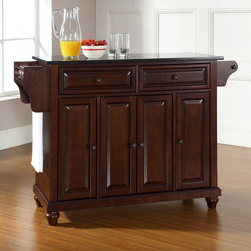 Crosley Cambridge Granite Kitchen Island, BrownSupplement your kitchen with this Crosley Cambridge island. Two drawers provide storage. Cabinets with adjustable shelving offer additional room. Built-in towel and spice racks keep essentials in reach. Granite top accommodates your food prep needs. 36''H x 52''W x 18''D Wood, MDF, granite Wipe clean Assembly requiredCrosley