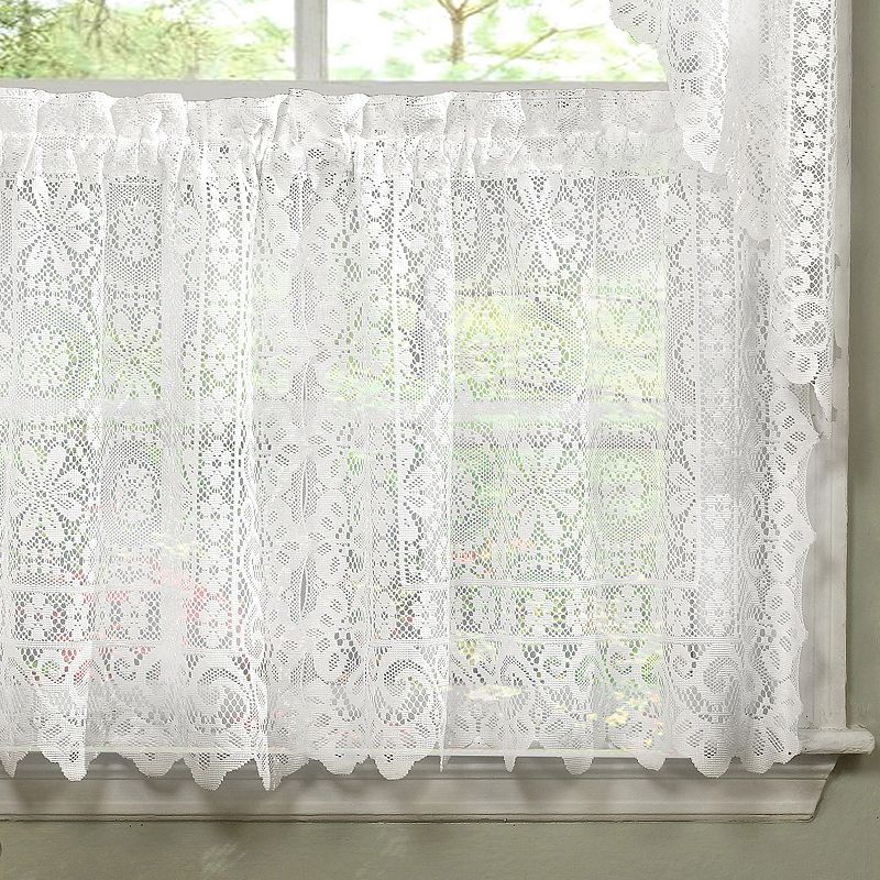Sweet Home Old World Style Floral Lace Kitchen Tier, WhiteElevate the look of your existing decor with this stylish Sweet Home Old World Style Floral Lace Kitchen Tier. 2 panels included Rod pocket 1.5" max rod diameterSIZING 36" L x 29" W, Total W 58",24" L x 29" W, Total W 58"CONSTRUCTION & CARE Polyester Machine wash Imported Size: 24X58. Color: White. Gender: unisex. AgeSweet Home
