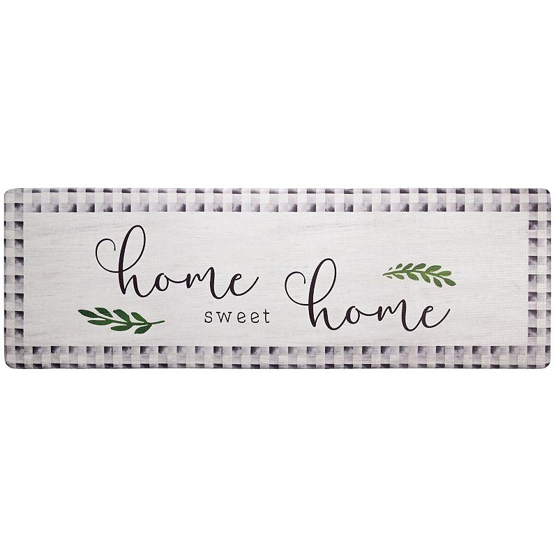 SoHome Cozy Living Home Sweet Home Buffalo Check Border Kitchen Mat, GraySpruce up your kitchen with this SoHome Cozy Living Home Sweet Home Buffalo Check Border Kitchen Mat. Spruce up your kitchen with this SoHome Cozy Living Home Sweet Home Buffalo Check Border Kitchen Mat. Slip, water, stain, & fade-resistantCONSTRUCTION & CARE PVC Non-slip backing Durable construction Pile height: 0.47"SoHome
