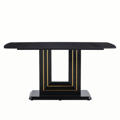 Rectangular 63" Marble Dining Table, Luxurious Dining Room Table With Faux Marble Top And U-Shape MDF Base, Modern Kitchen Dining Table For Kitchen LiLuxurious & Modern Design With a luxurious look and creative ultra-modern design, this beautiful large dinner table will fit perfectly with any home decor. The combination of faux marble top and U-shaped pedestal enhances the visual attractiveness of this marble dining table, making it simplistic but elegant, which isIvy Bronx