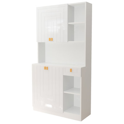Lark Manor 70" Tall Kitchen Pantry, Freestanding Cupboard Cabinet With Charge Station, Wood Storage Cabinet For Kitchen, Living Room, White, BlackDo you want a neat and efficient kitchen? This versatile cabinet is ideal for you. Ample storage space, easy to realize cutlery and kitchenware zoning storage. With a variety of charging ports, not only can you quickly charge your phone/tablet, but also can use small appliances, no need to worry about kitchen electriciLark Manor