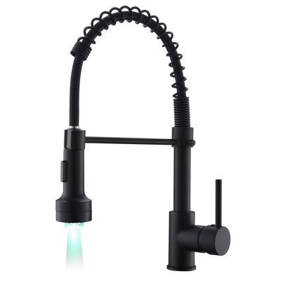 Commercial Kitchen Sink Faucet With Pull Down Sprayer LED Kitchen Spring Faucets Single Handle High Arc Mixer FaucetsStylish, classic LED kitchen faucets are designed to add modern elegance to your kitchen. From comfortable touches like a beautifully edged base and sprayed, to the highly functional pull-down design, this single-hole kitchen faucet has it all. Unlike ordinary pull-down kitchen sink faucets, this matte black kitchen faAWZTOO