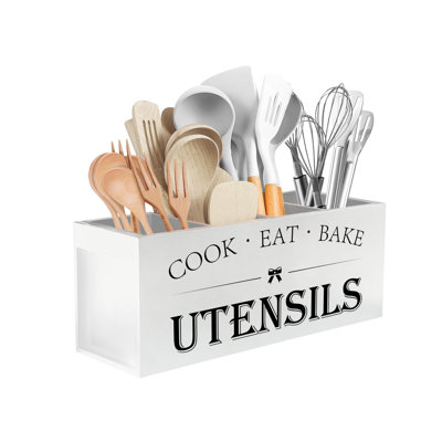 Extra Large Kitchen Utensils Holder With 4 Compartments, Wooden Utensil Organizer For Kitchen Countertop, WhiteOur wooden utensil organizer has 4 compartments. Large, roomy and pretty. Easy to grab utensils. Size:15.74"L x 5.9"W x 7.08"H. You can store all of your cooking tools easily and neatly. The rectangular shape can fit in nicely against the wall. A nice kitchen decoration!The middle divider can be removed, more convenienGracie Oaks