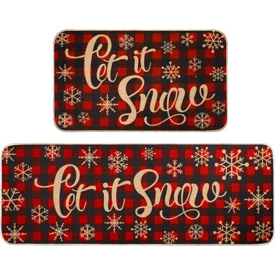 Christmas Kitchen Rug Sets 2 Piece Let It Snow Christmas Plaid Waterproof Non-Slip Kitchen Mats And Rugs Winter Christmas Doormat Rubber Back Low-Prof17 Inch x 29.2 Inch(L x W) + 17 Inch x 47.3 Inch(L x W), which fits in most entryway nicely The Holiday AisleThe Holiday Aisle