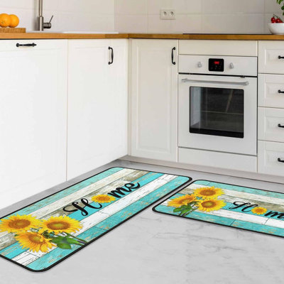Teal Kitchen Rugs Set of 2 - Kitchen Floor Mats Non-Slip Backing MatNon-slip BackingThe teal kitchen rugs and mats come with non-skid backing, which holds the rugs in place for extra safety, and helps prevent slipping or tripping. You don't have to worry about slipping or scratching the floor. The turquoise rug can be used for multiple surfaces(wood, ceramic, marble, tiles, laminate, eEast Urban Home