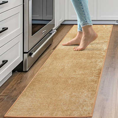 Kitchen Rugs And Mats Non Slip Washable Absorbent Kitchen Runner Rug Non Skid Rubber Backing Kitchen Mats For Floor Standing Mat Rugs For Kitchen, FroThe farmhouse tan color kitchen runner mat is made of high-quality chenille and premium rubber materials, and the edging uses the same color as the floor mat, making it look more integrated and elegant. Our floor mats protect your floor from scratches, provide you with comfortable support, and let you have a great cookLatitude Run
