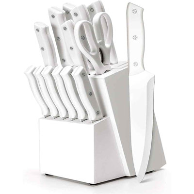 Knife Set, 15 Piece Kitchen Knife Set With Block Self Sharpening, Dishwasher Safe, Anti-Slip Handle (Cream)- High quality stainless steel Knife Sets for Kitchen with Block is durable and rust-resistant for longer and more frequent use-- - No need to worry about handle breakage 15-piece knife set includes. 8" chef's knife, 8" slicing knife, 7" Santoku knife, 8"Stunver