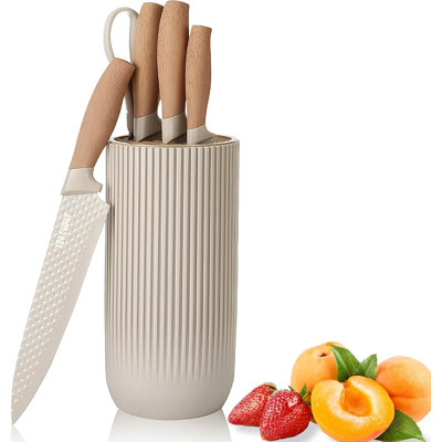 6-Piece Versatile Kitchen Knife Set Khaki Sharp Knife SetsThis 6-piece knife set provides everything you need to tackle any cooking task. From chopping vegetables to carving roasts, the kit comes with a kitchen knife, chef's knife, slicing knife, box cutter, kitchen scissors, and a stylish all-purpose knife holder. STIDOLASTIDOLA