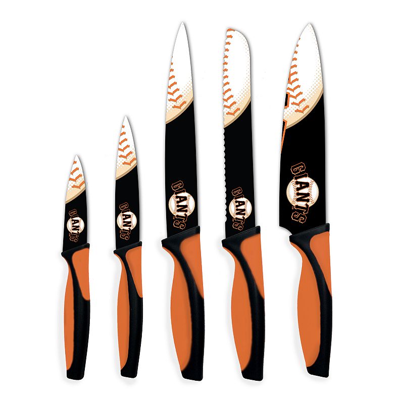 San Francisco Giants 5-Piece Cutlery Knife Set, TeamCut like a boss in the kitchen with this San Francisco Giants cutlery knife set.PRODUCT FEATURESNon-slip ergonomic handlesOfficially licensedWHAT'S INCLUDEDChef knifeBread knifeCarving knifeParing knifeUtility knifeStainless steelHand washImportedShop our full assortment of San Francisco Giants items here. When you?reMLB