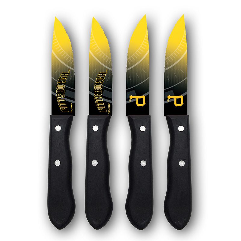 Pittsburgh Pirates 4-Piece Steak Knife Set, TeamSlice through your favorite cute of meat like a champ with these Pittsburgh Pirates steak knives.PRODUCT FEATURESIncludes 4 steak knivesSerrated bladesHalf-tang blade designErgonomic handlesOfficially licensedStainless steelHand washImportedShop our full assortment of Pittsburgh Pirates items here. When you?re a fan, yMLB