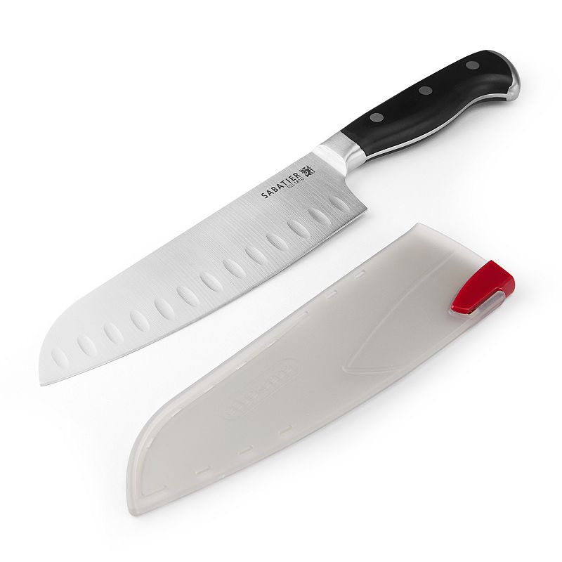Sabatier Edgekeeper 7-in. Santoku Knife with SheathSabatier EdgeKeeper Knives feature a sheath with innovated technology that is designed to automatically sharpen the blade with each use. EdgeKeeper protective sheath contains a built-in mechanism that hones the blade before and after each use, maintaining a blade's razor-sharp edge Blade is made from high-carbon steelSabatier