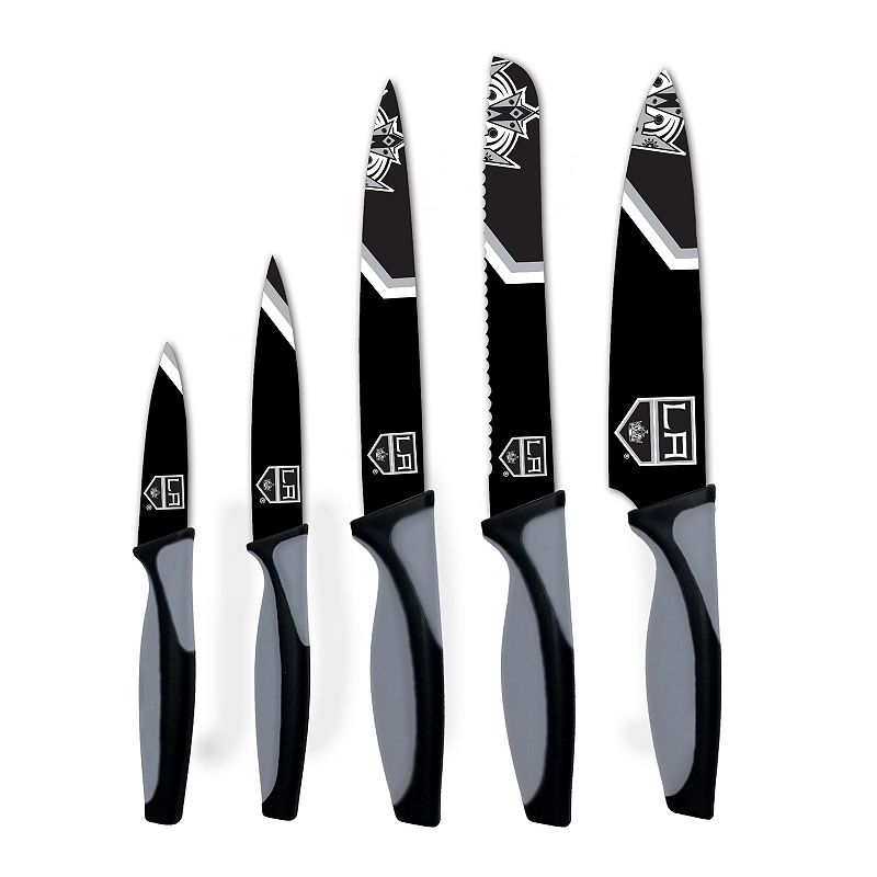 Los Angeles Kings 5-Piece Cutlery Knife Set, Kgs TeamCut like a boss in the kitchen with this Los Angeles Kings cutlery knife set.PRODUCT FEATURESNon-slip ergonomic handlesOfficially licensedWHAT'S INCLUDEDChef knifeBread knifeCarving knifeParing knifeUtility knifeStainless steelHand washImportedShop our full assortment of Los Angeles Kings items here. When you?re a fan,NHL