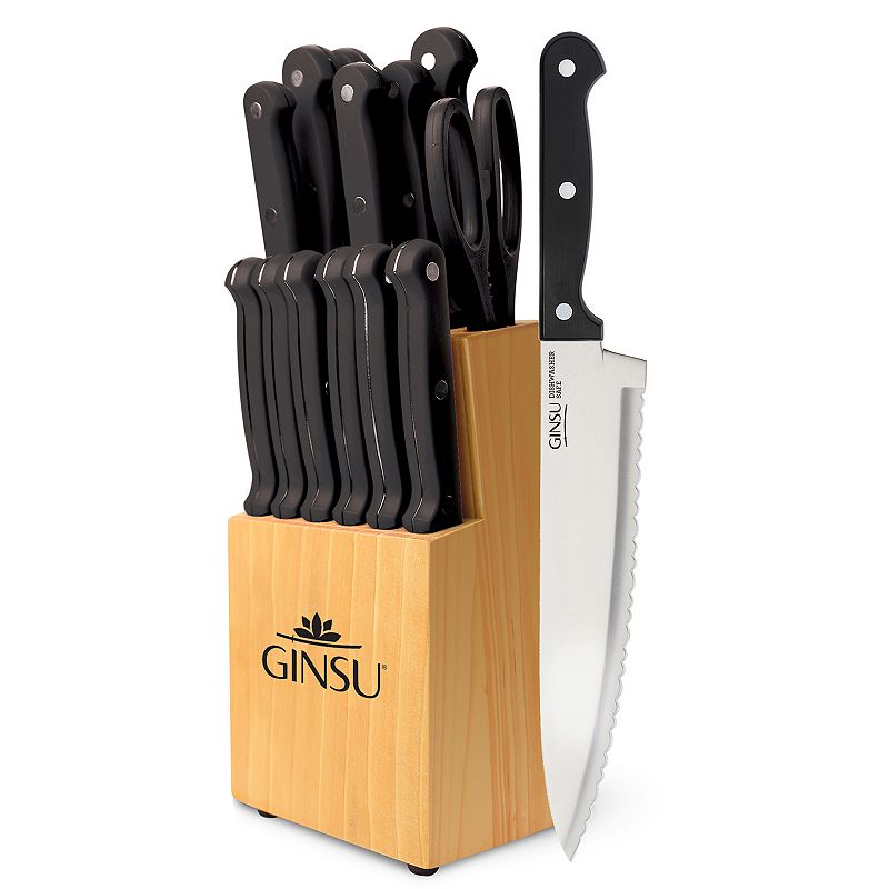 Ginsu Kiso 14-pc. Natural Knife Block Set, BlackSay hello to Ginsu's Kiso series. This 14-piece Kiso knife set is the perfect sharp, high-quality, uncomplicated set of tools for any kitchen.Say hello to Ginsu's Kiso series. This 14-piece Kiso knife set is the perfect sharp, high-quality, uncomplicated set of tools for any kitchen.Watch the product video here.PRODUCTGinsu