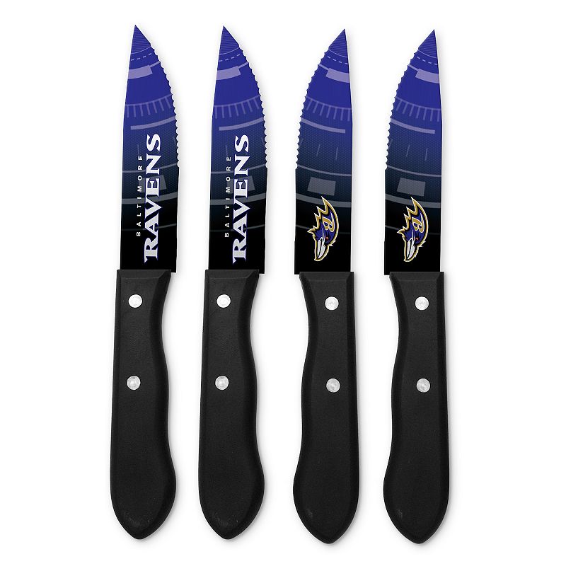 Baltimore Ravens 4-Piece Steak Knife Set, TeamSlice through your favorite cut of meat like a champ with these Baltimore Ravens steak knives.PRODUCT FEATURESIncludes 4 steak knivesSerrated bladesHalf-tang blade designErgonomic handlesOfficially licensedStainless steelHand washImportedShop our full assortment of Baltimore Ravens items here. When youre a fan, youre fNFL