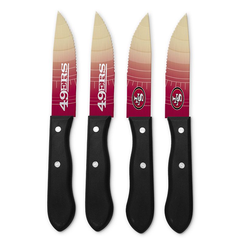 San Francisco 49ers 4-Piece Steak Knife Set, TeamSlice through your favorite cut of meat like a champ with these San Francisco 49ers steak knives.PRODUCT FEATURESIncludes 4 steak knivesSerrated bladesHalf-tang blade designErgonomic handlesOfficially licensedStainless steelHand washImportedShop our full assortment of San Francisco 49ers items here. When you?re a fan,NFL