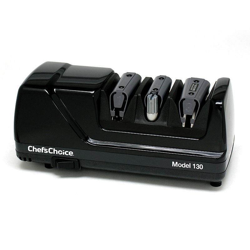 Chef'sChoice 130 Professional Knife Sharpening Station, BlackThe Chef'sChoice Professional Sharpening Station 130 eliminates the clutter of ineffective sharpening gadgets and provides one compact appliance for ultimate kitchen convenience. Electric knife sharpener with 100-percent diamond abrasives Built-in precision angle guides in all three stages eliminate guesswork and produChef'sChoice
