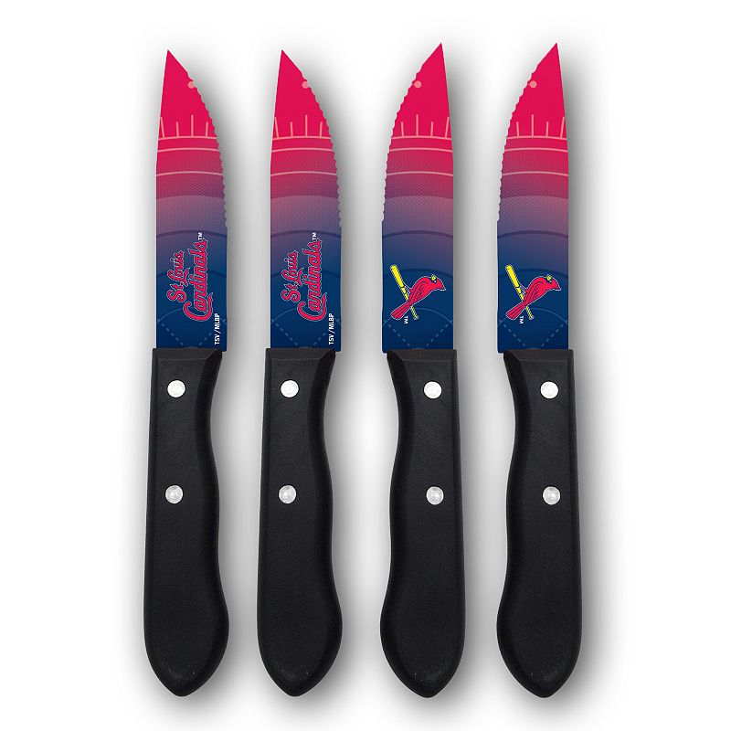 St. Louis Cardinals 4-Piece Steak Knife Set, TeamSlice through your favorite cute of meat like a champ with these St. Louis Cardinals steak knives.PRODUCT FEATURESIncludes 4 steak knivesSerrated bladesHalf-tang blade designErgonomic handlesOfficially licensedStainless steelHand washImportedShop our full assortment of St. Louis Cardinals items here. When you?re a fan,MLB