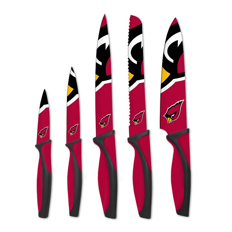 Arizona Cardinals 5-Piece Cutlery Knife Set, TeamCut like a boss in the kitchen with this Arizona Cardinals cutlery knife set.PRODUCT FEATURESNon-slip ergonomic handlesOfficially licensedWHAT'S INCLUDEDChef knifeBread knifeCarving knifeUtility knifeParing knifeStainless steelHand washImportedShop our full assortment of Arizona Cardinals items here. When you?re a fan,NFL