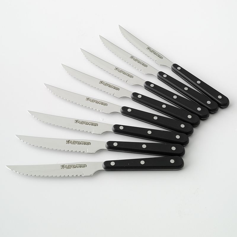 J.A. Henckels International Eversharp 8-pc. Steak Knife Set, MulticolorEasy cutting. You and your guests are sure to love this J.A. Henckels International Eversharp steak knife set.PRODUCT FEATURES High quality stainless steel blades resist stains, odors and rust for easy cleanup. Micro-serrated edges retain sharpness for a perfect slice every time. Full tang extends the length of each knJ.A. Henckels International