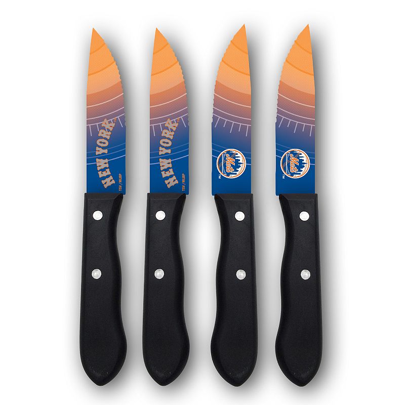 New York Mets 4-Piece Steak Knife Set, TeamSlice through your favorite cute of meat like a champ with these New York Mets steak knives.PRODUCT FEATURESIncludes 4 steak knivesSerrated bladesHalf-tang blade designErgonomic handlesOfficially licensedStainless steelHand washImportedShop our full assortment of New York Mets items here. When you?re a fan, you?re famiMLB