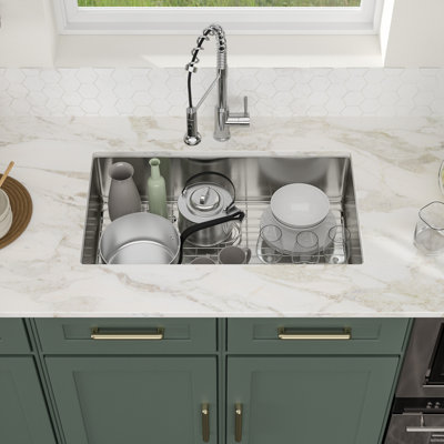 32" L x 19" W Undermount Kitchen Sink 16 Gauge Stainless Steel Kitchen Sink Single Bowl Kitchen SinkThis undermount kitchen sink is crafted from premium T304 stainless steel in 16 Gauge(thicker than 18 Gauge), which offer superior resistance to rust, corrosion, and stains, ensuring long-lasting performance in your kitchen. Its robust construction withstands the rigors of daily use. LogmeyLogmey