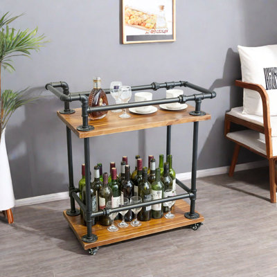 Industrial Style Bar Carts,Serving Cart For Home, Bar,Mobile Kitchen Shelf,Rolling Kitchen Carts For Home Kitchen Dining RoomBar Cart, Not just a kitchen cart, but also a coffee lover's delight,2-Tiers wood layers, our Kitchen Baker's Rack offers has good ventilation and moisture resistance, which helps to save more space indoors and make the kitchen more beautiful and neat. Metal frame and solid wood effectively enhances its stability and pWilliston Forge