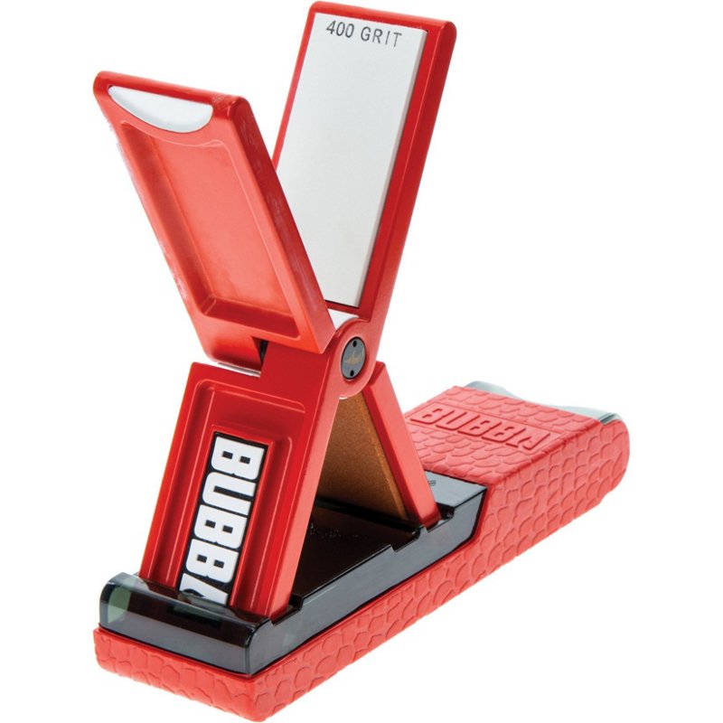 Bubba Ultra Fillet Knife Sharpener - Pliers/Scales/GrpprsKeep your knives performing at maximum efficiency with the Bubba Ultra Fillet Knife Sharpener. The locking system adjusts from 19 to 26 degree sharpening angles for convenience. The medium 400 grit stone and fine 600 grit sharpeners help ensure an effective, versatile performance, while the texture, nonslip grip encourBubba