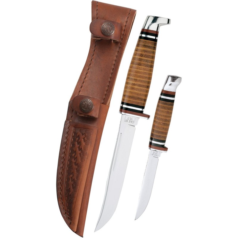 WR Case & Sons Cutlery Co Leather Hunter Knife Set Brown Leather - Folding/Pocket KnivesThe WR Case & Sons Cutlery Co Leather Hunter Knife Set includes 2 fixed blades made from Case Tru-Sharp™ stainless steel to resist corrosion and holds its edge. The rugged leather handles provide a sure, comfortable grip, and the single leather belt sheath holds both knives. WR Case & Sons Cutlery Co Leather Hunter KniWR Case & Sons Cutlery Co