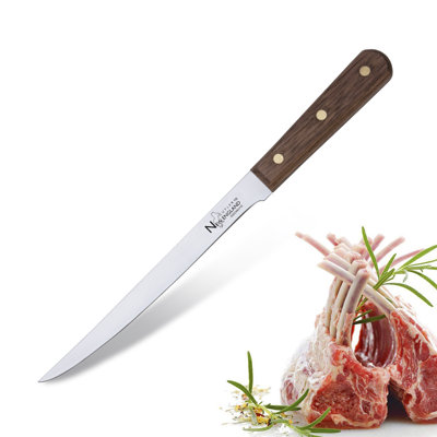 New England Cutlery Premium High Carbon Stainless Steel Hollow Edge Paring KnifeMade with high carbon stainless steel for long lasting sharp edge Razor sharp taper ground edge for precision cutting Heavy-duty full tang blade for strength and durability The premium walnut wood handle provides optimum balance and control Triple brass rivets for added strength New England CutleryNew England Cutlery