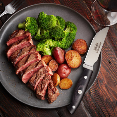 Broil King 4 Piece Steak Knife SetCrafted from hard 420 J2 stainless steel Comes with heavy resin handles Overall dimensions: 1" H x 13.5" W x 6" D Broil KingBroil King