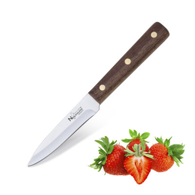 New England Cutlery Premium High Carbon Stainless Steel Hollow Edge Paring KnifeMade with high carbon stainless steel for long lasting sharp edge Razor sharp taper ground edge for precision cutting Heavy-duty full tang blade for strength and durability The premium walnut wood handle provides optimum balance and control Triple brass rivets for added strength New England CutleryNew England Cutlery