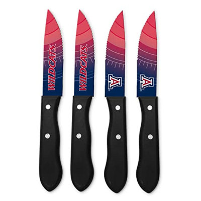 Ncaa Arizona Wildcats 4 Piece Steak Knife SetThat first cut into a juicy steak that's cooked perfectly medium rare and that initial bite of flavor goodness. Mmmmmmm!!! Now you can experience all of that meaty goodness while supporting your favorite team with this set of 4 serrated stainless steel steak knives from The Sports Vault. Each knife is approximately 9.5The Sports Vault Corp.