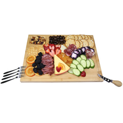 Charcuterie Board, Cheese Server, Bamboo Cheese Board And Knife Set, Cheese Plate, Cheese Platter, Serving Tray - Reversible 2-IN-1.This durable charcuterie/cutting board is made out of 100% natural bamboo and finished with food grade mineral oil creating a protective finish.Built-in compartments to keep foods separated, juice grooves to prevent spills and messes. Handle design to pick up and carry board with ease.Multifunctional design allows forLoon Peak