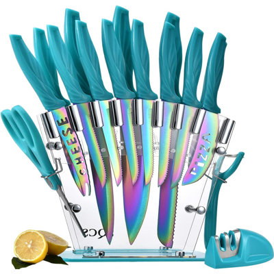 Wuyi 17 Piece High Carbon Stainless Steel Knife Block Setkitchen knife set with Rainbow knives block set is so thin that the kitchen knife set is sharp enough to cut hard food easily. Now anyone, newbie cook or master chef can enjoy cooking much faster, easier, cleaner. wuyiwuyi