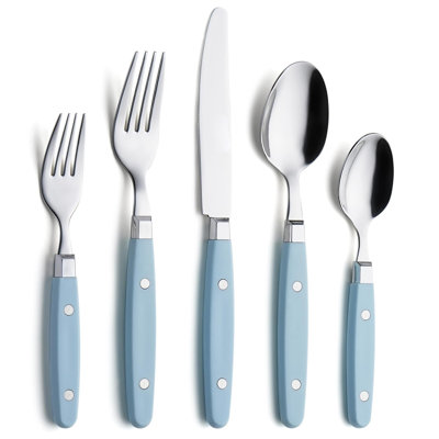 Silverware Set 20 Pieces Handle With Rivet/Retro Flatware Dinner Knife; Light Blue, 20 PiecesThis kind flatware is ergonomically designed with a comfortable grip, making it easy to hold and use, providing a comfortable and satisfying dining experience. Cleaning this flatware set is a breeze - simply pop it in the dishwasher for easy maintenance. With its unique design and practicality, this flatware set makesHokku Designs