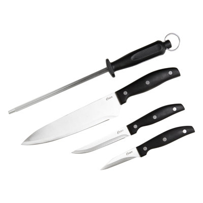 Oster Granger 4 Piece Knife SetMake sure all your slicing and dicing needs are met with these Knife Set. Each piece of this collection boasts precision and durability, and its sleek look is complemented by a beautiful stainless steel finish. Features ergonomically designed handles for comfort. OsterOster