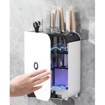 LIYONG 9 Slot Universal Knife Block360 three-dimensional surround negative ion blue light UV disinfectionUsing 200-300nm wavelength deep ultraviolet radiation to wrap the cutting board, cutting tools, and spatula, it can efficiently kill stubborn bacteria LIYONG Color: WhiteLIYONG
