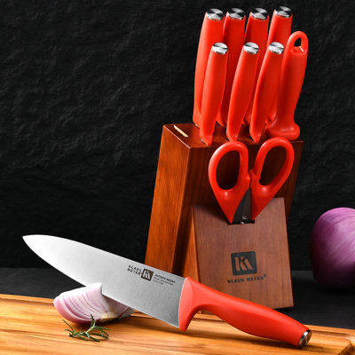 Klaus Meyer Acciaio 11 Piece Carbon Steel Knife Block SetGerman Engineered Kitchen Knife Klaus Meyer Handle Color: OrangeKlaus Meyer