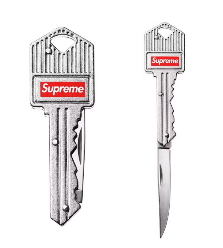 Supreme Key Knife Silver, Men'sseason Ss17 Color Silver The Supreme Key Knife Silver Presents A Piece Of Art And A Functional Tool With A Striking Design Unique To The Brand. Made From 100% Metallic Finish, The Supreme Key Knife Features A Two-Inch Foldable Knife. The Knife Folds Into A Flat Key Form, Featuring Three Visible Rivets. Two Of The RivetSupreme