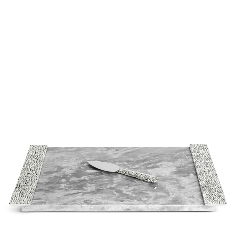 Michael Aram Shagreen Cheese Board & Knife - Size - OSMichael Aram Shagreen Cheese Board & Knife.Color:Gray.Material:Grey Sparkalite marble/nickel-plate/stainless steel.Serveware.Michael Aram