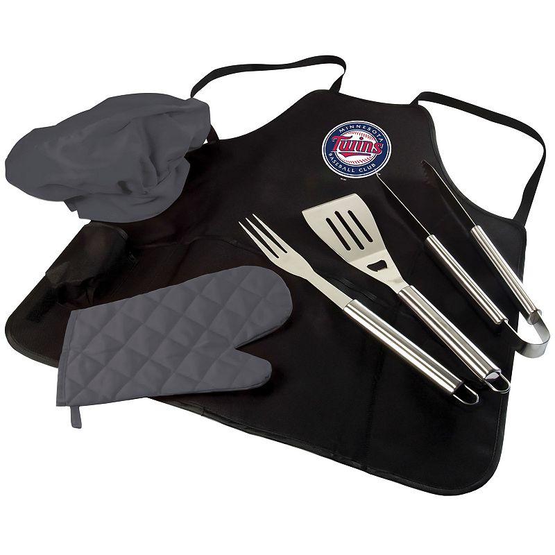 Picnic Time Minnesota Twins BBQ Apron, Utensil & Tote Set, BlackYou'll be a BBQ master on game day or any day with this Minnesota Twins apron and utensil set from Picnic Time.PRODUCT FEATURES Team logo graphic Includes: apron, spatula, fork, tongs, chef's hat & oven mitt Apron folds into a carrying tote Polyester, stainless steel Wipe clean Imported Shop our full assortment of MinnPicnic Time