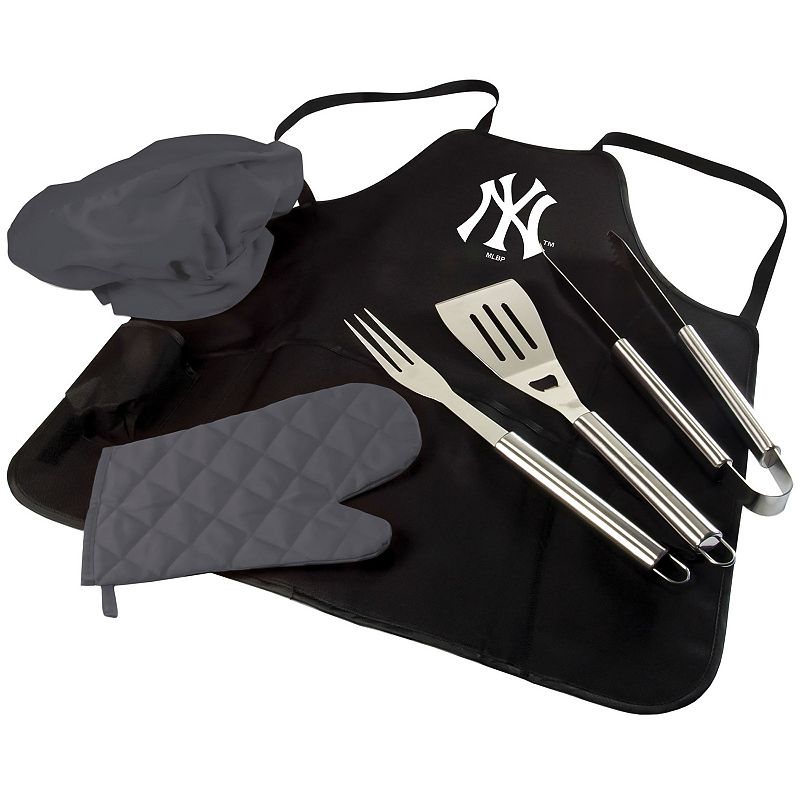 Picnic Time New York Yankees BBQ Apron, Utensil & Tote Set, BlackYou'll be a BBQ master on game day or any day with this New York Yankees apron and utensil set from Picnic Time.PRODUCT FEATURES Team logo graphic Includes: apron, spatula, fork, tongs, chef's hat & oven mitt Apron folds into a carrying tote Polyester, stainless steel Wipe clean Imported Shop our full assortment of NewPicnic Time